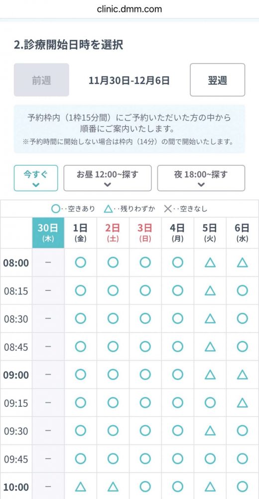 ③診療開始日時を選択する(空きがあれば当日予約もOK!)
