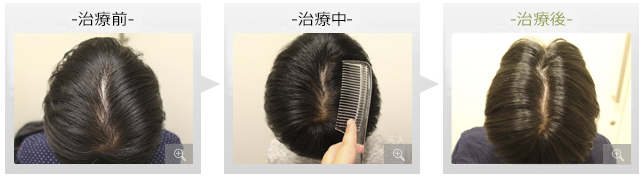 症状の進行具合や治療の進捗状況のほか、患者様のご希望によっては、注入治療のノーニードル育毛メソセラピーを実施します。