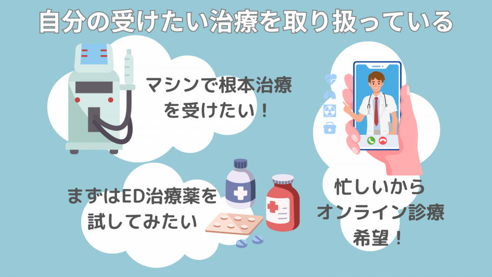 ED治療とひとことで言っても、クリニックによって受けられる治療はさまざまです。