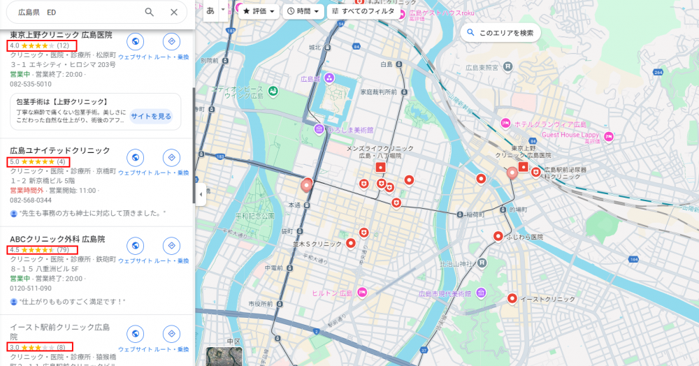 広島でED治療を受けるクリニックを選ぶ際は、Googleマップの口コミも参考にしてみましょう。