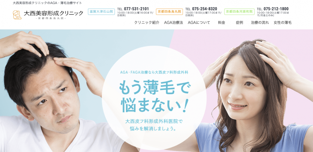 京都ではAGAスキンクリニックや湘南美容クリニックなどが該当します。