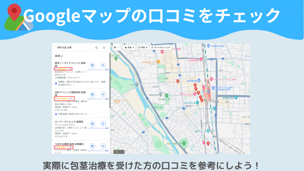 高崎で包茎手術を受けるクリニックを選ぶなら、Googleマップの口コミも参考にしてみましょう。