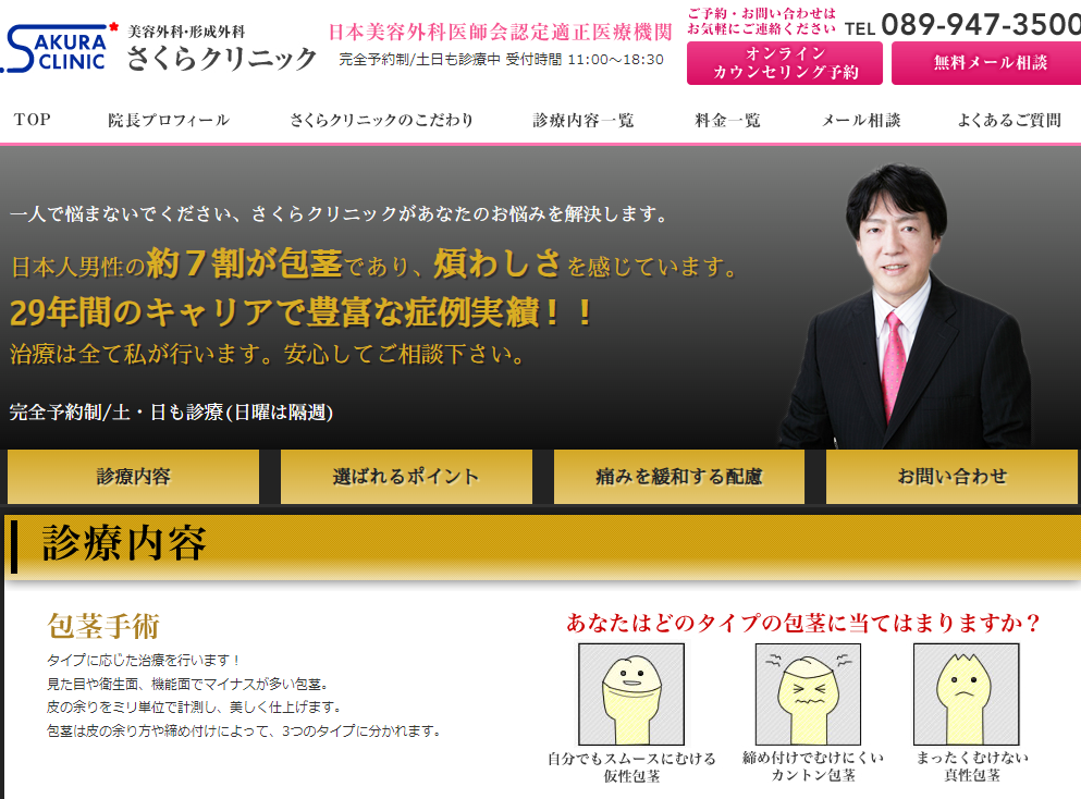 松山院の院長は女性ですが、形成外科専門医の資格を取得されています。信頼と実績のある美容外科クリニックで包茎手術を受けたい方におすすめです。